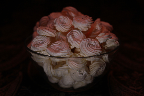 Bevor die Baiser in den Ofen kommen, könnt ihr sie auch mit bunten Zuckerkügelchen verzieren.